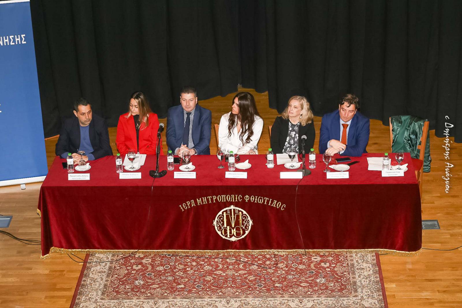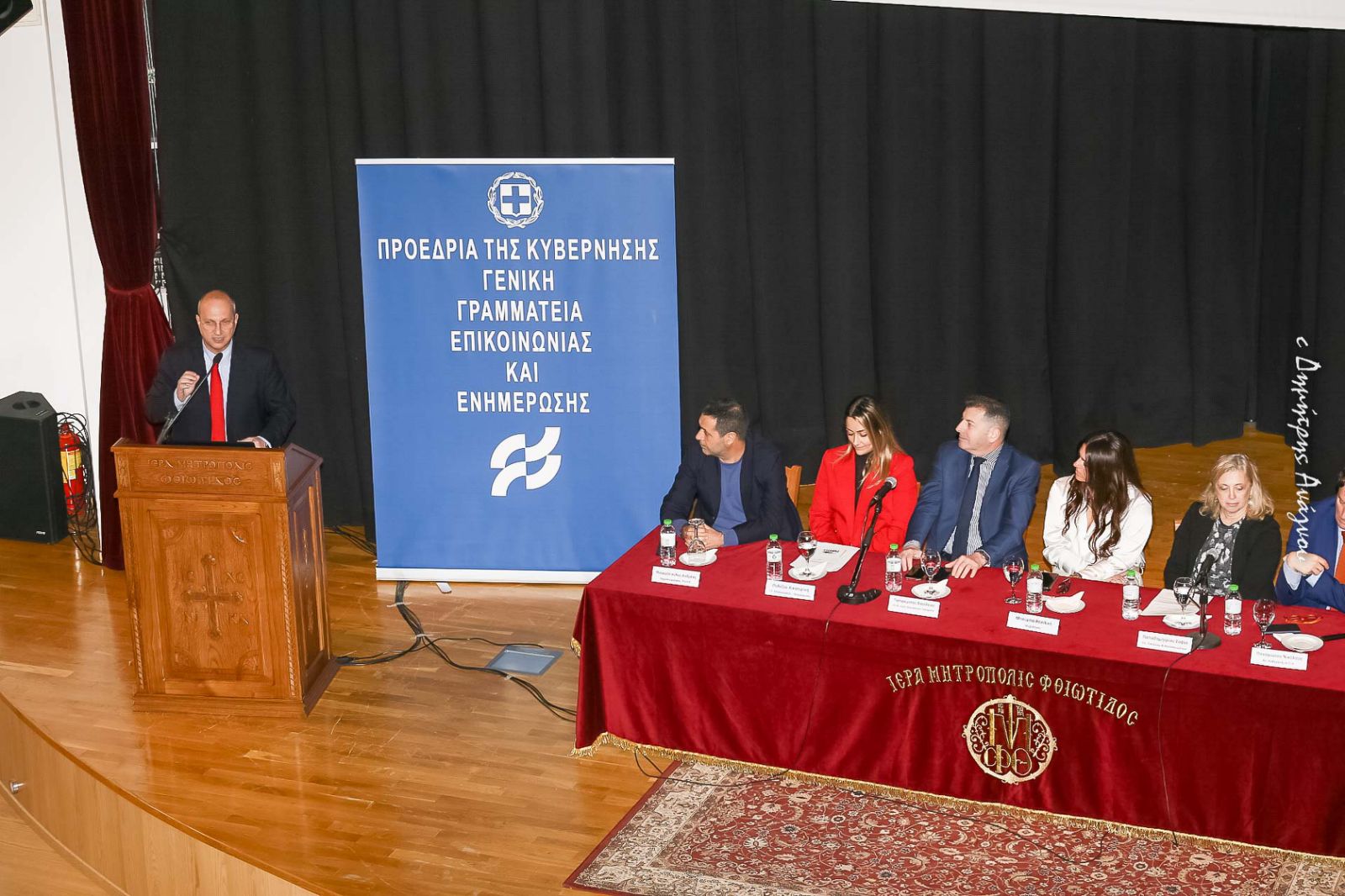 Χαιρετισμό, στην έναρξη της ημερίδας, απηύθυναν ο Σεβασμιώτατος Μητροπολίτης Φθιώτιδος, κ. Συμεών, ο Υφυπουργός παρά τω Πρωθυπουργώ και Κυβερνητικός Εκπρόσωπος, Γιάννης Οικονόμου, ο Γενικός Γραμματέας Επικοινωνίας και Ενημέρωσης, Δρ. Δημήτρης Γαλαμάτης και η Διευθύντρια Περιφερειακής Διεύθυνσης Εκπαίδευσης Στερεάς Ελλάδας, Δρ. Ελένη Μπενιάτα.
