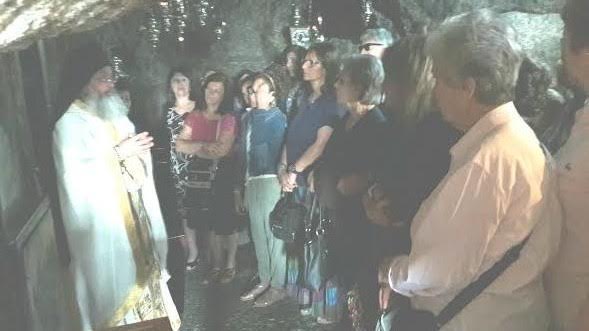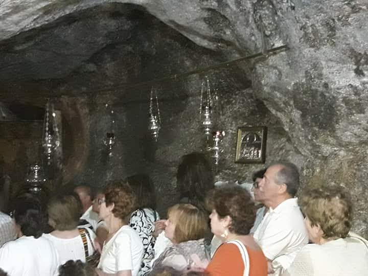 Τα 110 άτομα είχαν την ευκαιρία να προσκυνήσουν πολλά ιερά προσκυνήματα τόσο της Ιεράς Νήσου όσο και της περιοχής της Κορίνθου, όπως το Ιερό Κάθισμα της Παναγίας της Κουμάνας, τις Ιερές Μονές Ευαγγελισμού –  Ζωοδόχου Πηγής – Παναγίας Διασώζουσας – Αγίου Ιωάννου του Θεολόγου, με αποκορύφωμα το Ιερό Σπήλαιο της Αποκαλύψεως όπου το Ιερατείο τέλεσε το Ιερό Μυστήριο της Θείας Ευχαριστίας, δίνοντας έτσι την ευκαιρία στους αδελφούς μας να μεταλάβουν των Αχράντων Μυστηρίων, να νιώσουν τη μεγάλη ευλογία του Αγίου Ιωάννου βλέποντας την Αγία Θέση όπου καθόταν και ακούγοντας τον ίδιο τον Θεό έγγραφε την Αποκάλυψη.