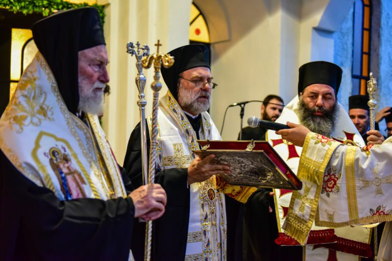 Προ της ενάρξεως των Ιερών Ακολουθιών εκοσμίσθηκαν εις τον Ιερό Ναό, ο παλαιός Σταυρός της Επισκοπής Λητής και Ρεντίνης, αποτμήματα των Ιερών Λειψάνων του Τιμίου Προδρόμου, του Αγίου Ιωάννου του Χρυσοστόμου και των Αγίων Νεομαρτύρων Κυράννης της Οσσαίας και Ακυλίνης-Αγγελίνης της εξ Ζαγκλιβερίω καταγομένης, καθώς επίσης η Θαυματουργός Εικόνα της Παναγίας της Βηματάρισσας, η οποία και φυλάσσετε εις τον Ιερό Ναό Κοιμήσεως της Θεοτόκου.