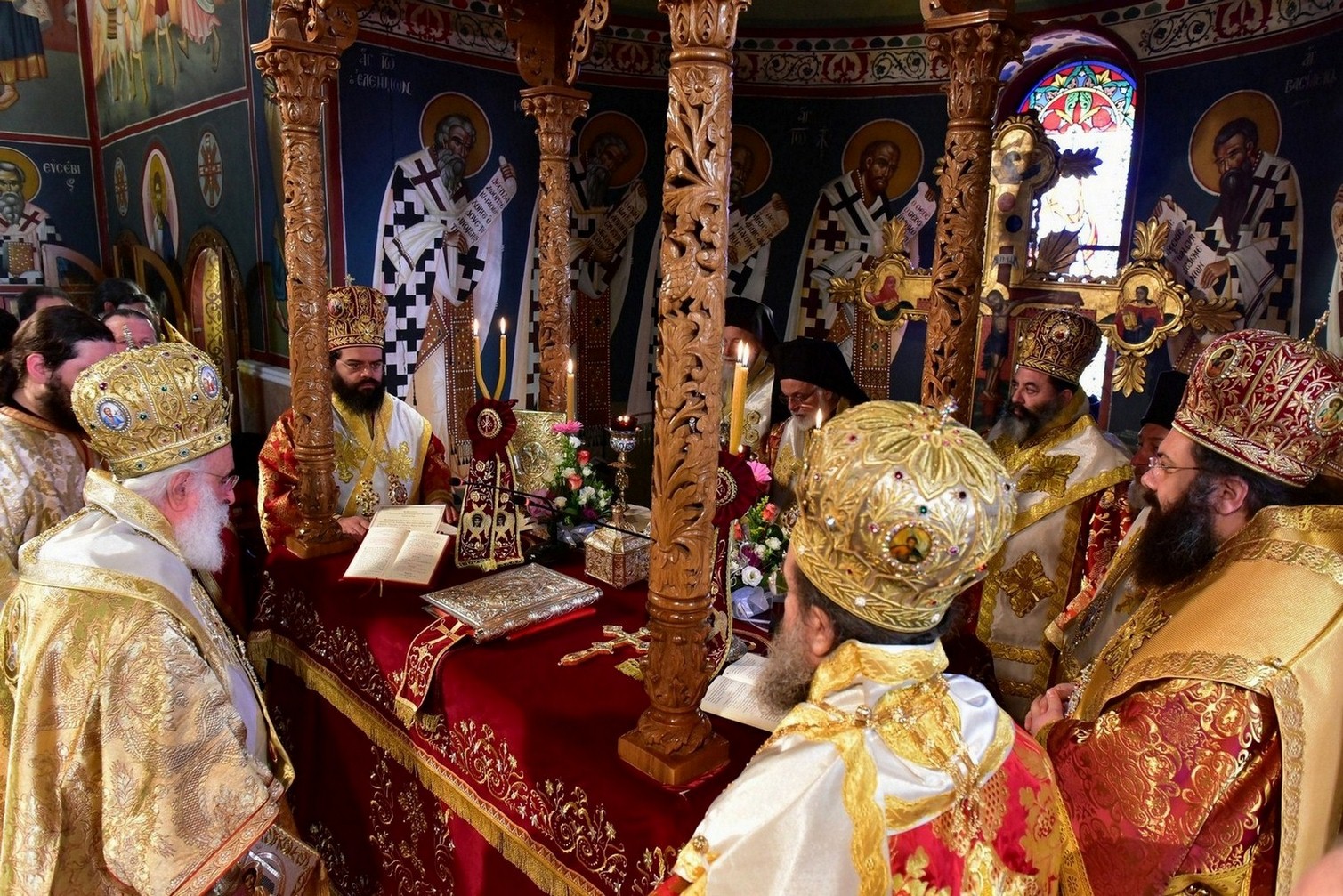 Σήμερα το πρωί, ημέρα κατά την οποία τιμάται η Αγία Κυράννα, εις τον πάνσεπτο και περικαλέστατο φερώνυμο Ιερό Ναό της κωμοπόλεως της Όσσης, τελέσθηκε Πανηγυρική πολυαρχιερατική Θεία Λειτουργία προεξάρχοντος του Σεβασμιωτάτου Μητροπολίτου Ξάνθης και Περιθεωρίου κ.κ. Παντελεήμονος, ο οποίος χοροστάτησε και εις τον Όρθρον, και συλλειτουργούντων των Σεβασμιωτάτων Αρχιερέων Ιερισσού, Αγίου Όρους και Αρδαμερίου κ.κ. Θεοκλήτου, Μαρωνείας και Κομοτηνής κ.κ. Παντελεήμονος, Τρίκκης και Σταγών κ.κ. Χρυσοστόμου, των Θεοφιλεστάτων Επισκόπων Θερμών κ.κ. Δημητρίου, Αμορίου κ.κ. Νικηφόρου και Ρηγίου κ.κ. Ειρηναίου καθώς και του επιχώριου Μητροπολίτου Λαγκαδά, Λητής και Ρεντίνης κ.κ. Ιωάννου, ενώ εκ του Ιερού Βήματος παρέστη συμπροσευχόμενος ο Θεοφιλέστατος Επίσκοπος Θεουπόλεως κ.κ. Παντελεήμων.