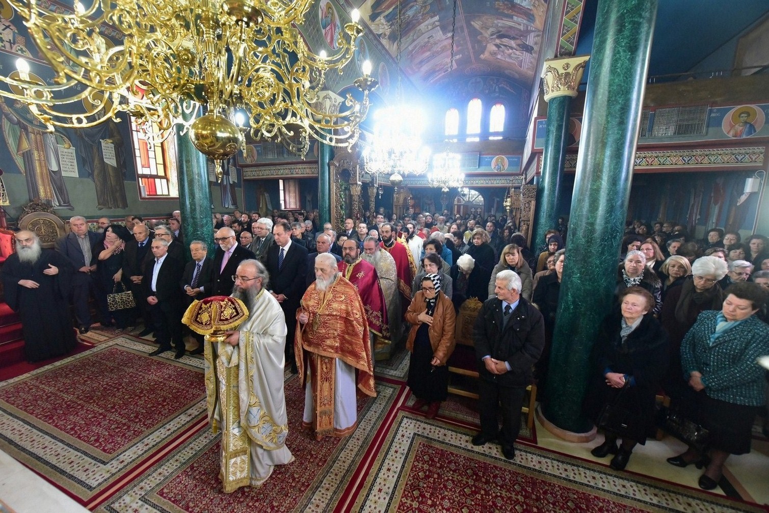 Στο κατάμεστο από πλήθος πιστών και προσκυνητών Ιερό Ναό της Αγίας, παρέστησαν μεταξύ των άλλων ο Βουλευτής των Αν.Ελλ. κ. Γεώργιος Λαζαρίδης, εκπρόσωποι της Ακαδημαϊκής Κοινότητος του Αριστοτελείου Πανεπιστημίου Θεσσαλονίκης με επικεφαλής τον Κοσμήτορα της Θεολογικής Σχολής του Α.Π.Θ. κ. Μιλτιάδη Κωνσταντίνου και τον Πρόεδρο του Τμήματος Θεολογίας κ. Παναγιώτη Σκαλτσή, εκπρόσωποι της Δημοτικής και Τοπικής Αυτοδιοικήσεως, καθώς και αντιπροσωπείες της μαθητιώσας νεολαίας και των πολιτιστικών Συλλόγων της περιοχής.