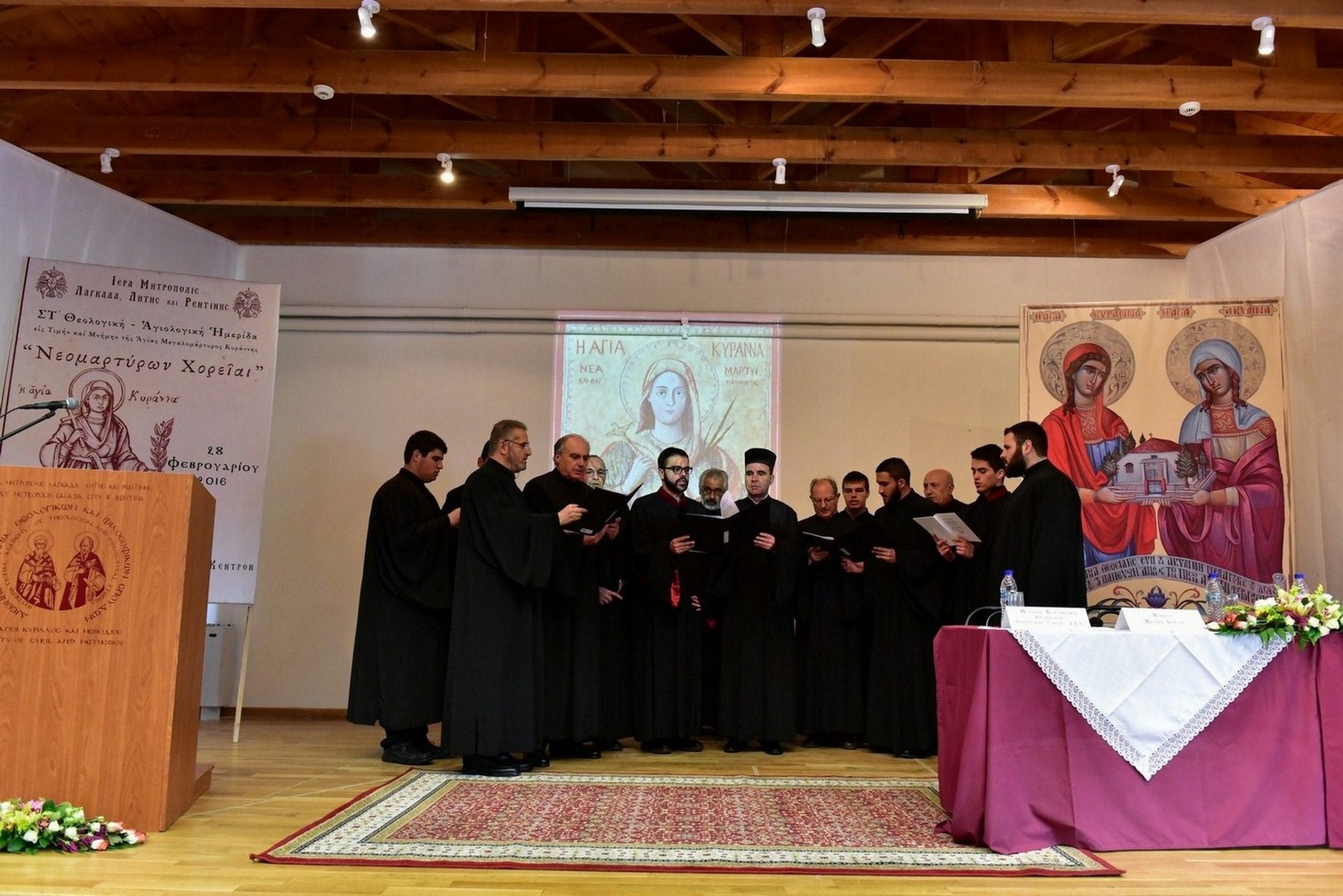Εν συνεχεία ακολούθησε, η ΣΤ΄ Θεολογική – Αγιολογική Ημερίδα, εις Τιμήν και Μνήμην της Αγίας Μεγαλομάρτυρος Κυράννης της Οσσαίας, η οποία εφέτος είχε ως γενικό τίτλο: «Νεομαρτύρων Χορείαι». Στο πρώτο μέρος της Θεολογικής Ημερίδος, ανεγνώσθησαν τα χαιρετιστήρια μηνύματα της Α.Θ.Π. του Οικουμενικού Πατριάρχου κ.κ. Βαρθολομαίου, από τον Σεβασμιώτατο Μητροπολίτη Ξάνθης και Περιθεωρίου κ.κ. Παντελεήμων και του Μακαριωτάτου Αρχιεπισκόπου Αθηνών και πάσης Ελλάδος κ.κ. Ιερωνύμου, από τον Σεβασμιώτατο Μητροπολίτη Ιερισσού, Αγίου Όρους και Αρδαμερίου κ.κ. Θεόκλητο, ενώ χαιρετισμό απεύθυναν ο Κοσμήτορας της Θεολογικής Σχολής του Α.Π.Θ. κ. Μιλτιάδης Κωνσταντίνου, ο Πρόεδρος του Τμήματος Θεολογίας του Α.Π.Θ. κ. Παναγιώτης Σκαλτσής και ο Βουλευτής των Αν. Ελλ. κ. Γεώργιος Λαζαρίδης, και ο επιχώριος Μητροπολίτης Λαγκαδά, Λητής και Ρεντίνης κ.κ. Ιωάννης, εμπνευστής και διοργανωτής της ημερίδος, ο οποίος παράλληλα και εκήρυξε και την έναρξη του Θεολογικού Συνεδρίου.