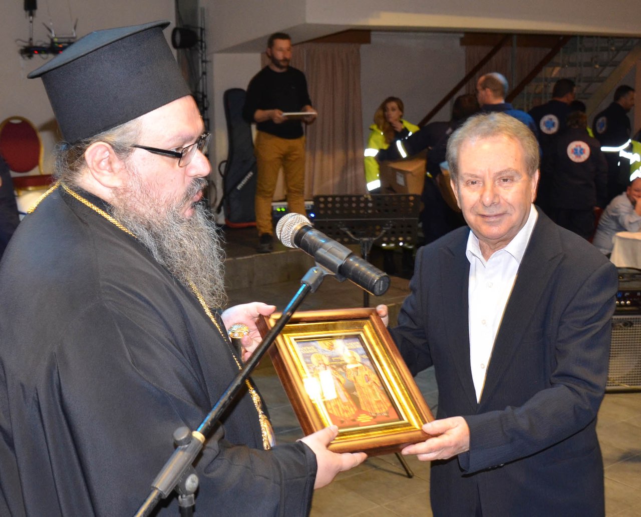 Ο Σεβασμιώτατος Μητροπολίτης Λαρίσης και Τυρνάβου κ. Ιερώνυμος, αφού πρωτίστως ευχαρίστησε τα μέλη του συμβουλίου που έχουν την ευθύνη των φιλανθρωπικών δραστηριοτήτων, μίλησε για την έννοια της φιλανθρωπίας και ευχαρίστησε τη χορωδία των εκπαιδευτηρίων της δις Μαίρης Ράπτου που στόλισε με τις παιδικές φωνές και τον νεανικό ενθουσιασμό την έναρξη της βραδιάς. Ακολούθως προσέφερε κατάλληλο εξοπλισμό, που εξασφαλίστηκε από μέρος των εσόδων της εκδήλωσης, στα μέλη της εθελοντικής ομάδος υγειονομικών αποστολών και διάσωσης, ενώ παρουσίασε σε όλο το κοινό τον μουσικό καλλιτέχνη και ερμηνευτή κ. Μανώλη Μητσιά, ο οποίος με τη μελωδική φωνή του σαγήνευσε όλους τους συνοδοιπόρους του φιλανθρωπικού έργου της Μητροπόλεως.