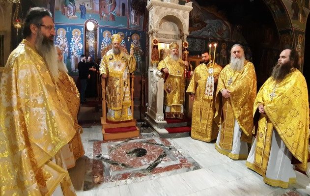 Στη δισαρχιεραατική αγρυπνία προεξήρχε ο παρεπιδημών στην επαρχία μας Μητροπολίτης Λαγκαδά Πλάτωνας, συλλειτουργούντος του Ποιμενάρχου ημών, του Μητροπολίτου Τρίκκης Χρυσοστόμου, συμμετοχή δε κληρικών των δυο Μητροπόλεων.