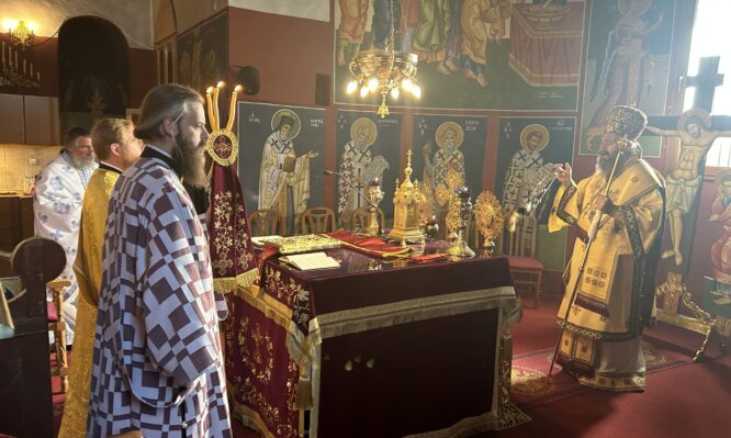 Στον περικαλλή Ιερό Ναό Κοιμήσεως της Υπεραγίας Θεοτόκου Πολυποτάμου ιερούργησε την Κυριακή 10 Αυγούστου 2025, ο Σεβασμιώτατος Μητροπολίτης Φλωρίνης, Πρεσπών και Εορδαίας κ. Ειρηναίος, πλαισιωμένος από τον εφημέριο του Ιερού Ναού πρωτοπρεσβύτερο Γεώργιο Καπουλίτσα. Πριν την ολοκλήρωση της Θείας Λειτουργίας, ο Σεβασμιώτατος απηύθυνε πατρικό λόγο, ερμηνεύοντας την Ευαγγελική περικοπή της Θ΄ Κυριακής του Ματθαίου. Με […]