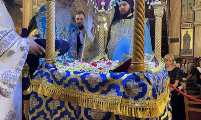 Τιμούμε την Κοίμηση Της, που ως άνθρωπος, κι Εκείνη κατέθεσε σε αυτήν την ζωή, αλλά, συνέχισε ο Σεβασμιώτατος, και την «εις ουρανούς Μετάστασιν του παναγίου και παναχράντου και ζωαρχικού Της σκηνώματος», το οποίο, τρεις ημέρες μετά τον θάνατο Της, μετέστη στους ουρανούς και ενώθηκε με την παναγία ψυχή Της «και ανέστη εκ των νεκρών, πρώτη από όλο το ανθρώπινο γένος, για να είναι η εγγύησις πάντων γι’ αυτήν την κοινή ανάσταση».