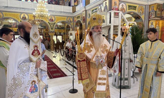 Στον Ιερό Ναό Αγίου Ελευθερίου Καμινίων ιερούργησε χθες Κυριακή μετά την Ύψωση του Τιμίου και Ζωοποιού Σταυρού του Κυρίου μας (21 Σεπτεμβρίου 2025) ο Σεβασμιώτατος Μητροπολίτης Πειραιώς κ. Σεραφείμ. Κατά τη διάρκεια του κηρύγματός του, ο Σεβασμιώτατος αναφερόμενος στην ευαγγελική περικοπή της ημέρας, επεσήμανε πως ο Χριστός «έγινε ένας από εμάς, άνθρωπος, για να μας […]