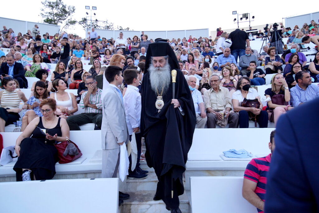 Ευχαριστώντας με πολύ θερμά λόγια και την ερμηνεύτρια Βασιλική Καρακώστα «η οποία μας πήγε στους ουρανούς», όπως χαρακτηριστικά τόνισε, της πρόσφερε ένα «μικρό αντίδωρο ευγνωμοσύνης», μια εικόνα της Υπεραγίας Θεοτόκου από το προσκύνημα της Τήνου. Ευχαρίστησε, επίσης, «τον φίλο και αδελφό» Γεράσιμο Ανδρεάτο για την παρουσία του και την διαχρονική του αγάπη στα εκπαιδευτήριά και τα παιδιά μας, αλλά και τον Μανώλη Κονταρό «ο οποίος τραγούδησε με την ψυχή του και με τη λύρα του, τους πόνους και τους καημούς της ρωμιοσύνης. Πάντοτε μας εμπνέει και μας οδηγεί με το σθένος, την ψυχή του και τη δύναμη της καρδιάς του», είπε ο Σεβασμιώτατος.