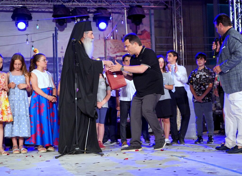 Όλοι οι μαθητές και οι μαθήτριες παρέλαβαν από τα χέρια του Σεβασμιωτάτου, μαζί με τις ευχές και την ευλογία του, ένα μπλουζάκι ως ενθύμιο της φετινής γιορτής λήξης.