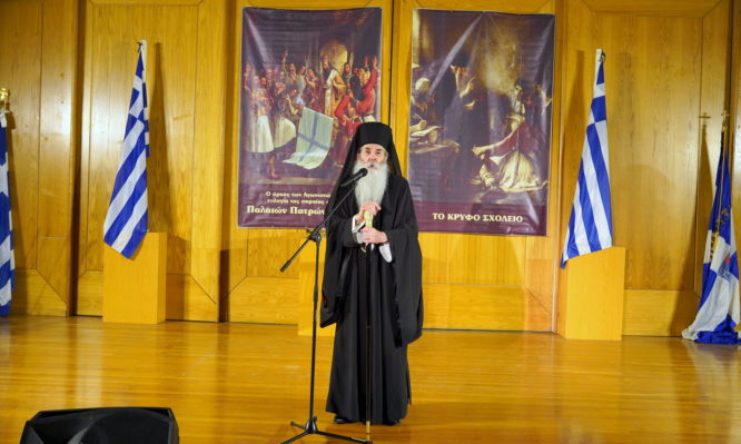«Σκεφτείτε αν μπορούσαν ποτέ να πουν στους ήρωες και τους μάρτυρες, στους μάρτυρες που με το αίμα τους πότισαν το δέντρο της λευτεριάς μας, να εκχωρήσουν κυριαρχικά δικαιώματα της πατρίδας χωρίς αντίσταση, χωρίς πίστη, χωρίς βαθιά εσωτερική ενοείδεια, χωρίς ενσυναίσθηση. Αν θα ήταν ποτέ δυνατόν να επισυμβεί ποτέ κάτι τέτοιο», ανέφερε ο Σεβασμιώτατος, επισημαίνοντας πως «οι Ενορίες μας και η Μητρόπολή μας και η Εκκλησία μας, το Σώμα Χριστού, αγωνίζεται ακριβώς να μεταλαμπαδεύει στους νέους ανθρώπους, στη διάδοχη γενιά τα ζώπυρα της πίστεως. Τη ρώμη, την ευπρέπεια, τη χαρά, τον αληθινό ερωτισμό που γίνεται όχημα αγάπης, θυσίας, τεκνοποιίας, οικογένειας και του μεγάλου Μυστηρίου του γάμου».