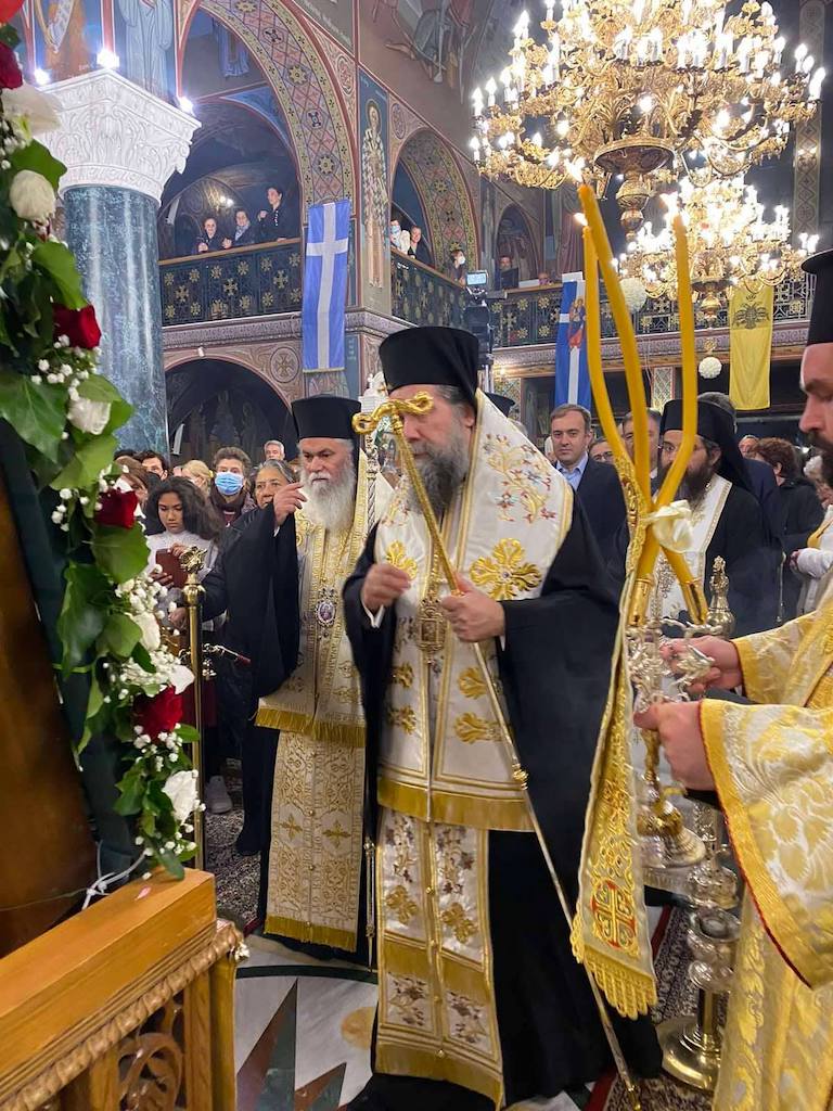 Ο Καλαβρύτων κ. Ιερώνυμος αμέσως μετά την πάνδημη υποδοχή της θαυματοβρύτου Εικόνος της Θεομήτορος, χοροστάτησε στη Δοξολογία και στον Εσπερινό, που τελέσθηκαν στον ως είρηται ιερό Μητροπολιτικό Ναό.