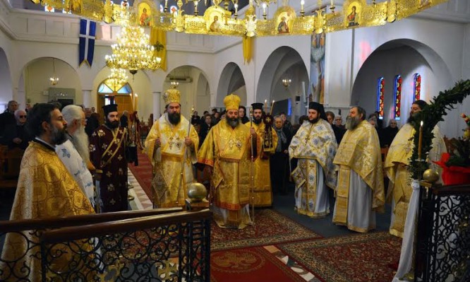 Αρχιερατικό συλλείτουργο προεξάρχοντος του μητροπολίτη Σερρών κ. Θεολόγου, και συλλειτουργούντος του μητροπολίτη Λαγκαδά, κ. Ιωάννη τελέστηκε σήμερα το πρωί στον ιερό ναό Αγίων Κωνσταντίνου και Ελένης Ασσήρου, όπου βρίσκεται από χτες το απόγευμα η Τίμια Κάρα του Αγίου Θεοδώρου του Τήρωνος.