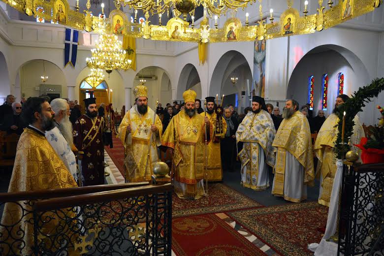 Αρχιερατικό συλλείτουργο προεξάρχοντος του μητροπολίτη Σερρών κ. Θεολόγου, και συλλειτουργούντος του μητροπολίτη Λαγκαδά, κ. Ιωάννη τελέστηκε σήμερα το πρωί στον ιερό ναό Αγίων Κωνσταντίνου και Ελένης Ασσήρου, όπου βρίσκεται από χτες το απόγευμα η Τίμια Κάρα του Αγίου Θεοδώρου του Τήρωνος, η οποία φυλάσσεται στον ιερό Καθεδρικό ναό των Αγίων Θεοδώρων Σερρών.