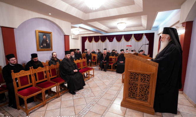 Τον Σεβασμιώτατο προλόγισε ο υπεύθυνος της σειράς των ομιλιών «Πνευματικοί – Ακαδημαϊκοί Διάλογοι» και Αρχιερατικός Επίτροπος περιχώρων Βεροίας, Αρχιμ. Σωσίπατρος Πιτούλιας.