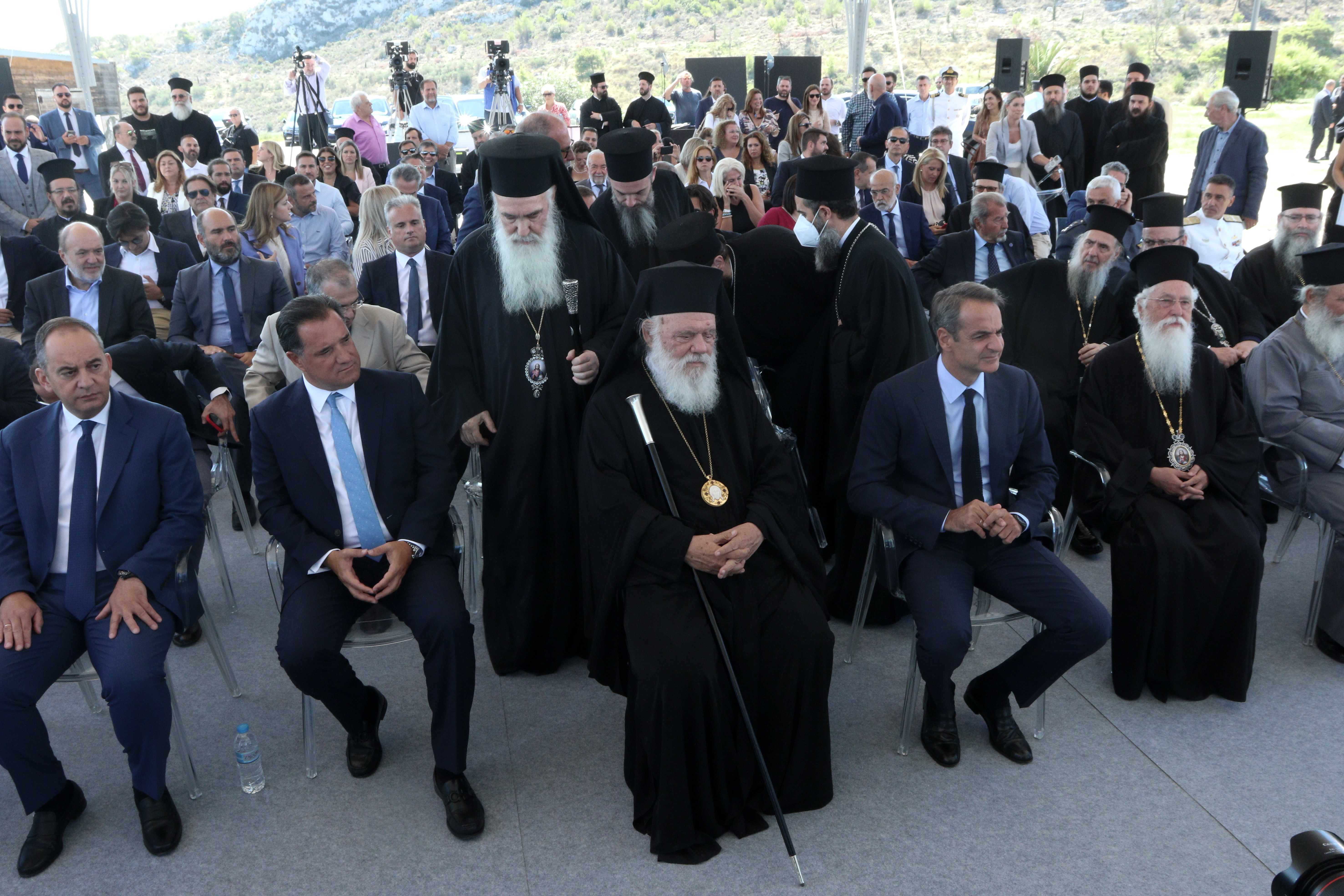 Στην εκδήλωση που πραγματοποιήθηκε στο Σχιστό για την υπογραφή συμφωνίας μεταξύ της Εκκλησίας της Ελλάδος και του ΤΑΙΠΕΔ για την αξιοποίηση Κτήματος που ανήκει στην Εκκλησιαστική Κεντρική Υπηρεσία Οικονομικών της Εκκλησίας (ΕΚΥΟ) έδωσαν το παρών ο Πρωθυπουργός Κυριάκος Μητσοτάκης και ο Αρχιεπίσκοπος Αθηνών και Πάσης Ελλάδος κ. Ιερώνυμος.