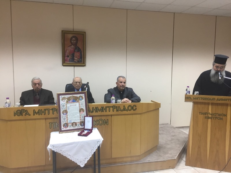 Ακολούθησε η απονομή της Ανώτατης Τιμητικής Διάκρισης της Ιεράς Μητροπόλεως Δημητριάδος, του Χρυσού Σταυρού μετά Διπλώματος, από τον Σεβ. Ποιμενάρχη μας κ. Ιγνάτιο και η αντιφώνηση του τιμηθέντος, με θέμα: «Επίκαιρα μηνύματα των Τριών Ιεραρχών».