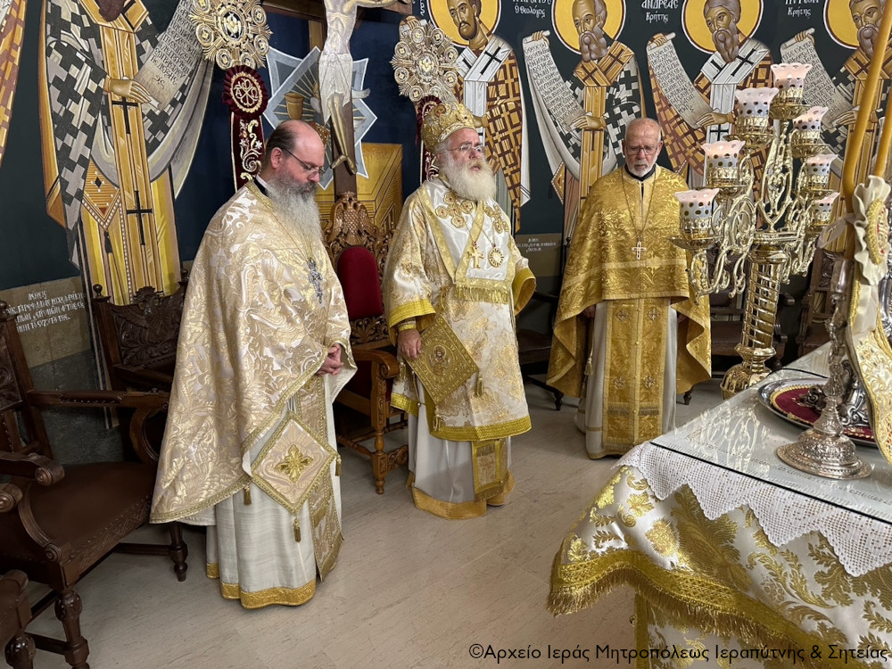 Στην Αρχιερατική Θεία Λειτουργία έλαβαν μέρος ο Εφημέριος και Προϊστάμενος της Ενορίας Αρχιμ. Πορφύριος Αγγελάκης, ο συνταξ Εφημέριος πρωτ. Μιχαήλ Ξυδιανός και ο Διάκονος Θεμιστοκλής Μπεϊνάς.