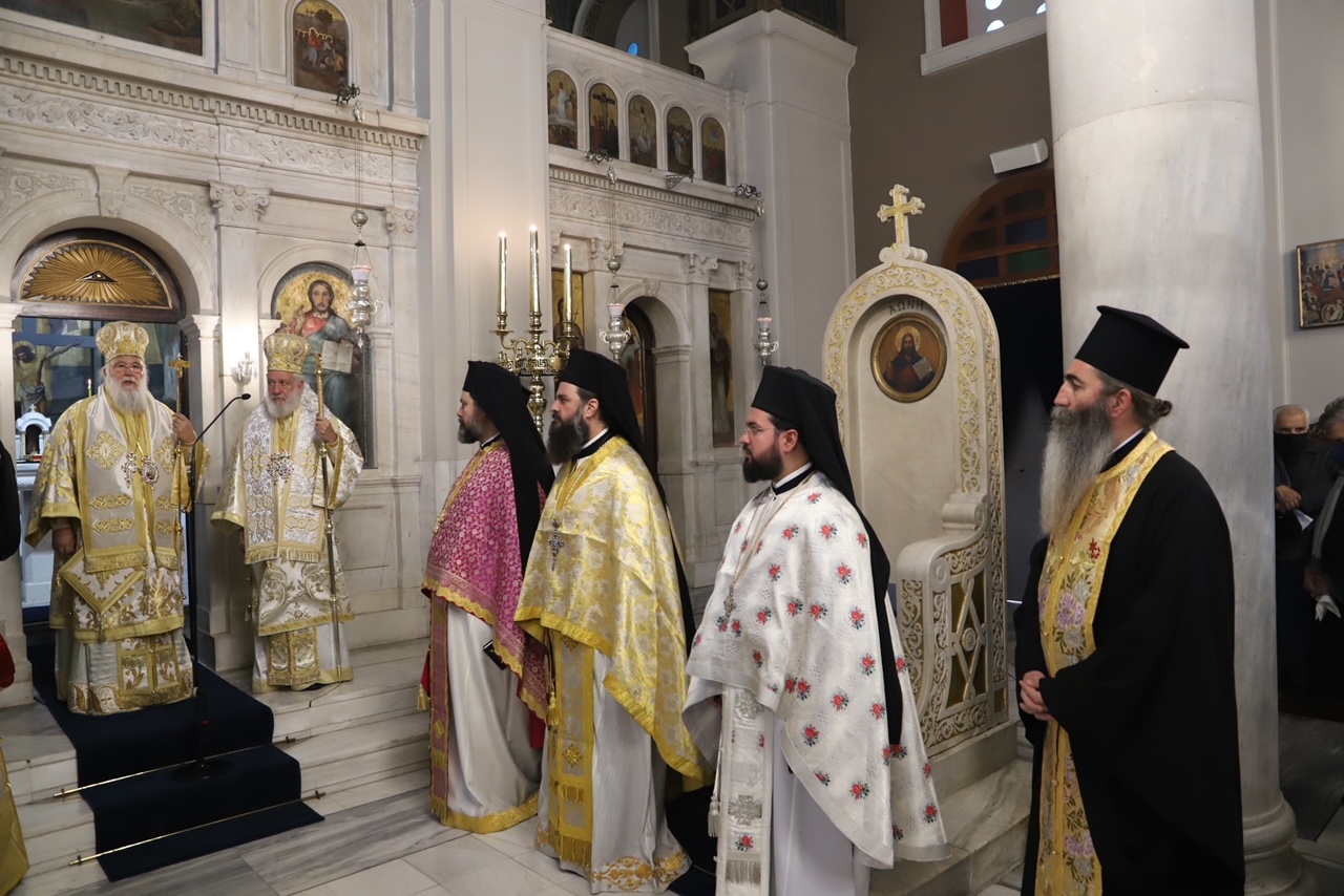 Την Θεία Λειτουργία τέλεσαν οι Μητροπολίτες Κερκύρας Νεκτάριος, Σύρου Δωρόθεος και Σερρών Θεολόγος και συμπροσευχόμενος στο μνημόσυνο παρέστη ο μητροπολίτης Βρεσθένης Θεόκλητος.