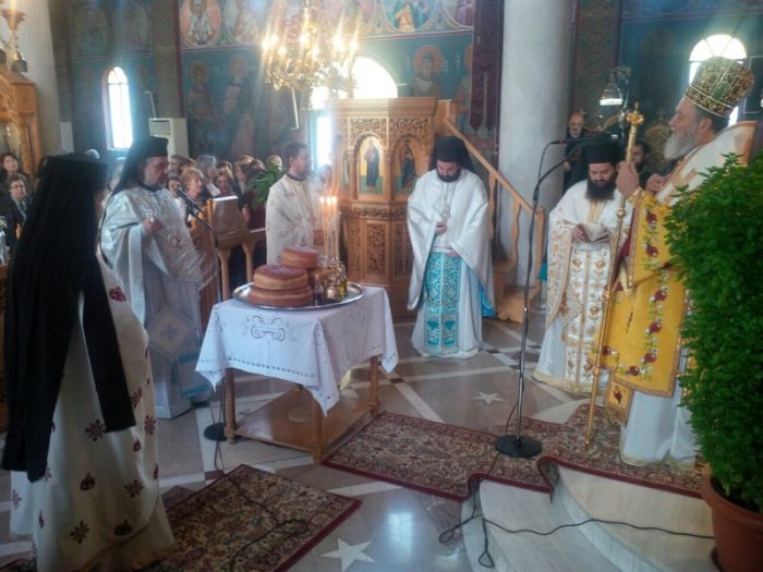 Πριν την Απόλυση, ο Σεβασμιώτατος Μητροπολίτης Χαλκίδος ευχήθηκε και στον εορτάζοντα Προϊστάμενο του Ι. Ναού, Αρχιμ. Χριστόδουλο Μάνια, τον οποίον επαίνεσε για την προθυμία και την εργατικότητά του, τόσο στον Ι. Ναό του Αγίου Νεκταρίου Χαλκίδος, όσο και στην Ι. Μονή Αγίου Γεωργίου ΑΡΜΑ, της οποίας τυγχάνει Ηγούμενος, ενώ δεν παρέλειψε να κάνει αναφορά και στον μακαριστό Αρχιεπίσκοπο Αθηνών και πάσης Ελλάδος κυρό Χριστόδουλο, ο οποίος εόρταζε αυτή την ημέρα τα ονομαστήριά του και εις μνήμην του οποίου ετελέσθη Ιερό Μνημόσυνο.