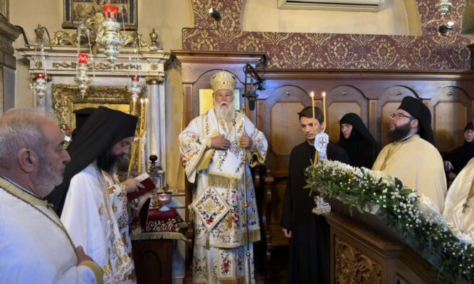 Στην Ιερά Μονή Αγίων Θεοδώρου του Τήρωνος και Γεωργίου του τροπαιοφόρου στην περιοχή Στρατιά της πόλης της Κέρκυρας λειτούργησε το πρωί της Δευτέρας 21 Οκτωβρίου 2024, ημέρα κατά την οποία η Εκκλησία εορτάζει την μνήμη της ανακομιδής των λειψάνων του Οσίου Χριστοδούλου του εν Πάτμω του Λατρηνού, ο Σεβασμιώτατος Μητροπολίτης Κερκύρας, Παξών και Διαποντίων Νήσων κ. Νεκτάριος.