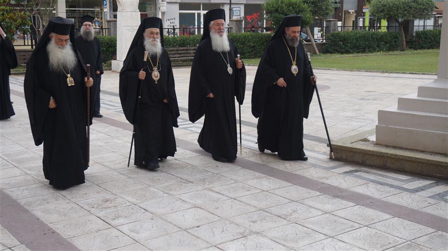 Στο τέλος οι Άγιοι Αρχιερείς μετέβησαν στον Ιερό Ναό Αγίας Παρασκευής Καρδίτσης, όπου βρίσκεται ο τάφος του μακαριστού Επισκόπου και τέλεσαν Τρισάγιο.