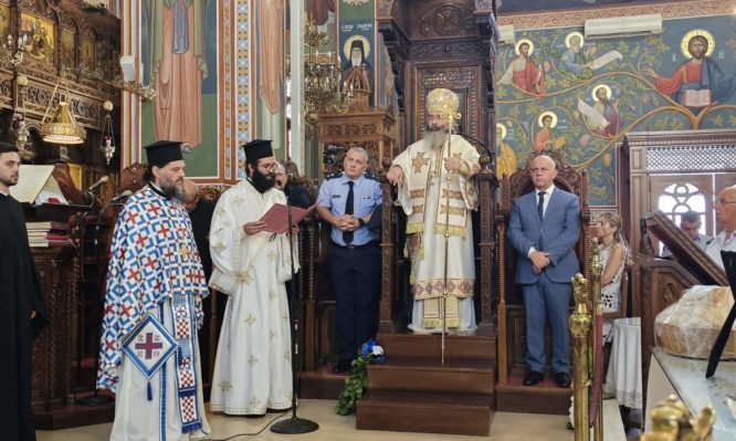 Στο τέλος της Θείας Λειτουργίας τέλεσε το μνημόσυνο των πεσόντων κατά το Πραξικόπημα της 15ης Ιουλίου 1974.