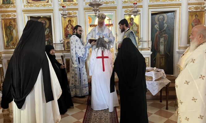 Στην εν λόγω Ιερά Μονή εγκαταβιεί μικρά αδελφότητα υπό της σεβαστής γερόντισσας Αγαθοκτίστης. Κατά τη διάρκεια της Θείας Λειτουργίας, ο Σεβασμιώτατος έκειρε εις Μεγαλόσχημον Μοναχήν, μία εκ των αδελφών της Ιεράς Μονής, η οποία έλαβε και το όνομα Μαριάμ.