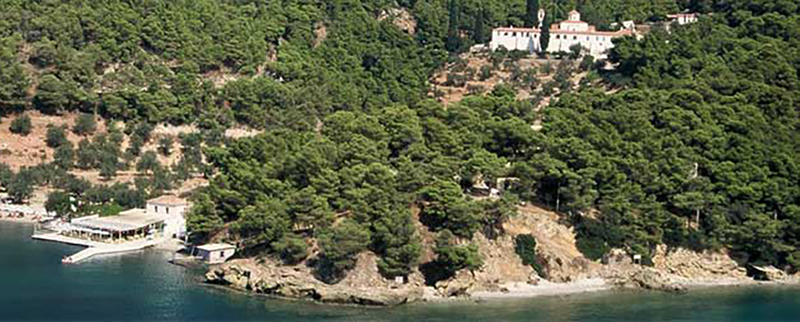 Η ιστορική Μονή Ζωοδόχου Πηγής Καλαυρίας φωλιάζει στις πευκόφυτες πλαγιές του Πόρου.