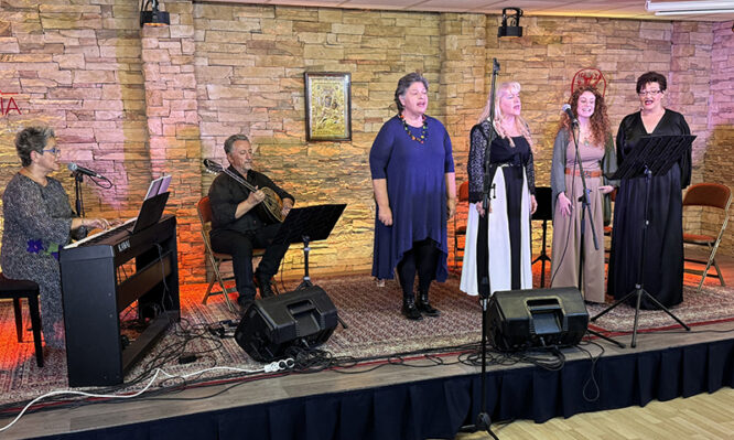 Τα τραγούδια των δύο συνθετών τραγούδησαν οι Αίγλη Μιχάλη, Φιλιώ Μπαφαλούκα, Ειρήνη Φέξη και Γωγώ Χρόνη. Διηύθυνε  η μαέστρος Μαρία Κάτσαρη και συνόδευσαν ο Γιάννης Λαμπράκης στο μπουζούκι και η μαέστρος στο πιάνο.