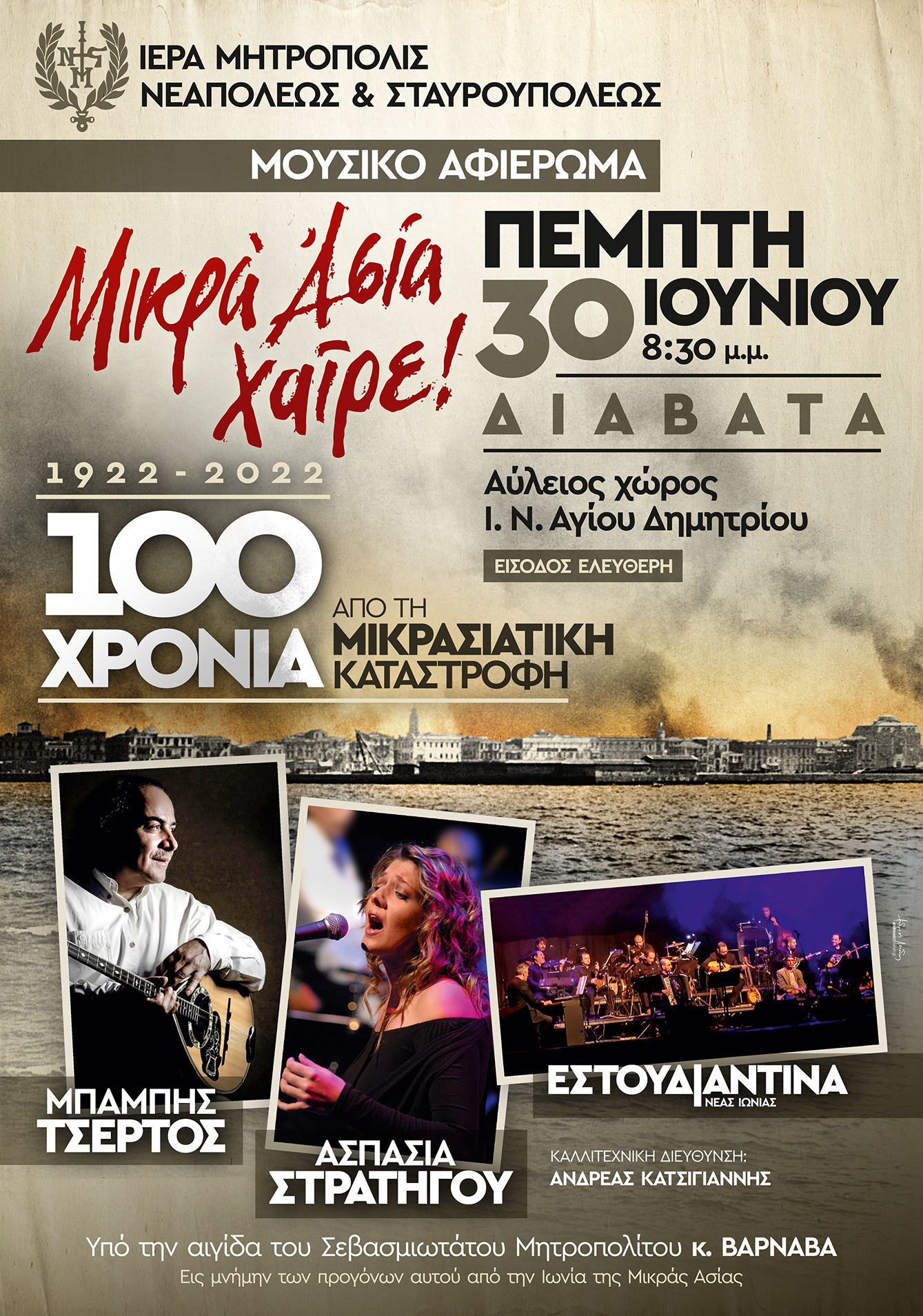 Μουσικό Αφιέρωμα για τα 100 χρόνια από τη Μικρασιατική Καταστροφή στη Μητρόπολη Νεαπόλεως