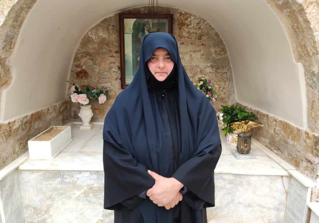 Η νέα Γερόντισσα γεννήθηκε στην Καλαμάτα το 1978, εισήλθε στην Ιερά Μονή το 1996 ως δόκιμη, ενώ το 2002 εκάρη Μοναχή από το Μακαριστό Μητροπολίτη Μεσσηνίας Χρυσόστομο Θέμελη.