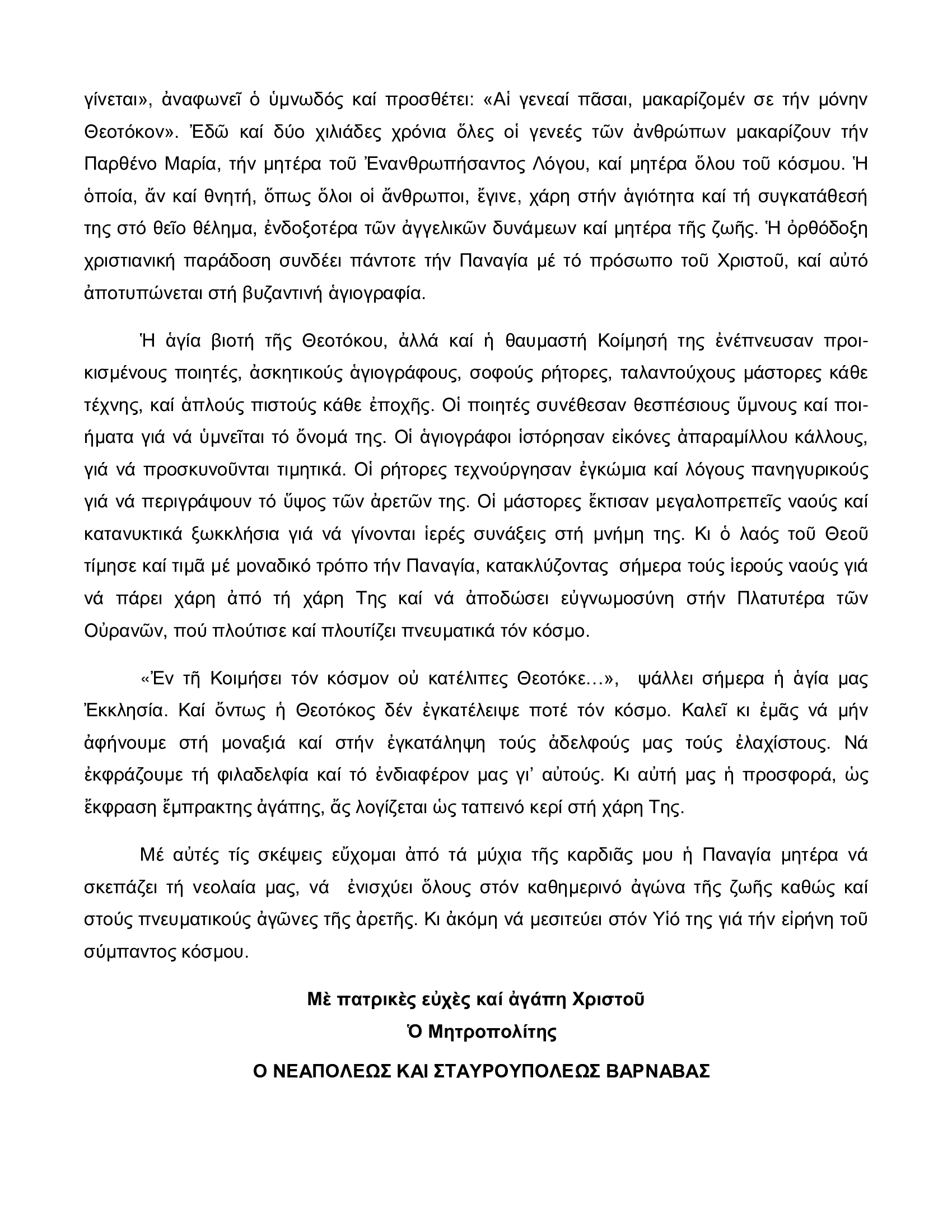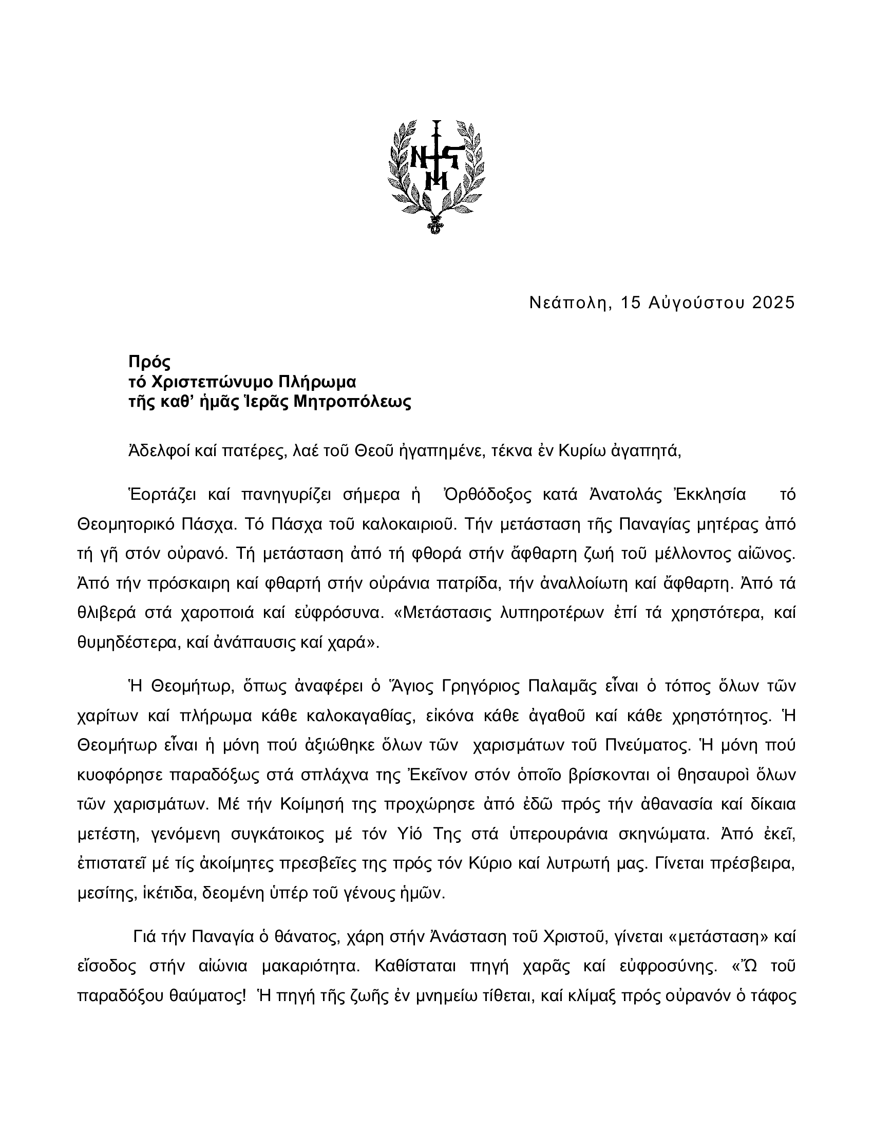 Νεαπόλεως Βαρνάβας: Η Παναγία να σκεπάζει τη νεολαία μας Δόγμα 05 Αυγούστου 2025 14:12 Tags: ΝΕΑΠΟΛΕΩΣ ΒΑΡΝΑΒΑΣ