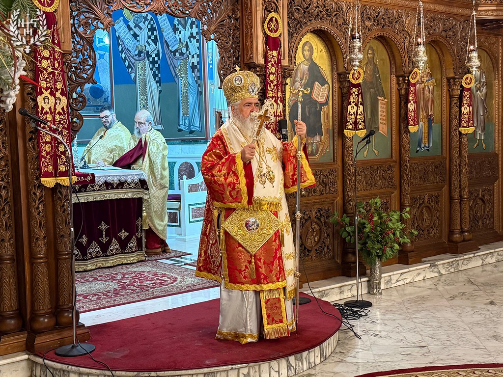 Κατά τη διάρκεια της Θείας Λειτουργίας ανεγνώσθη, αντί κηρύγματος, η Χριστουγεννιάτικη Εγκύκλιος του Σεβασμιωτάτου. Σε αυτήν υπογραμμίστηκε ότι το μήνυμα της Γεννήσεως του Χριστού ηχεί ως ελπίδα μέσα σε έναν κόσμο που δοκιμάζεται από τον φόβο, τη βία και την αβεβαιότητα. Ο Χριστός δεν έρχεται ως δύναμη επιβολής, αλλά ως θυσιαστική αγάπη, συγχώρηση και ζωή, καλώντας τον άνθρωπο σε συμφιλίωση και ελευθερία.