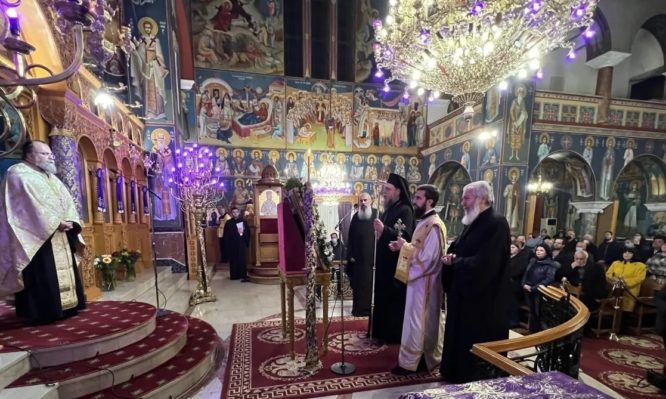 Με τη δέουσα λαμπρότητα τελέστηκε την Παρασκευή 3 Μαρτίου 2023 η Ακολουθία της Α’ Στάσης των Χαιρετισμών προς την Υπεραγία Θεοτόκο στον Ιερό Ναό Αγ. Κωνσταντίνου και Ελένης στη Νέα Ιωνία, χοροστατούντος του Μητροπολίτου Νέας Ιωνίας, Φιλαδελφείας, Ηρακλείου και Χαλκηδόνος κ. Γαβριήλ και τη συμμετοχή κληρικών της Μητροπόλεως Νέας Ιωνίας
