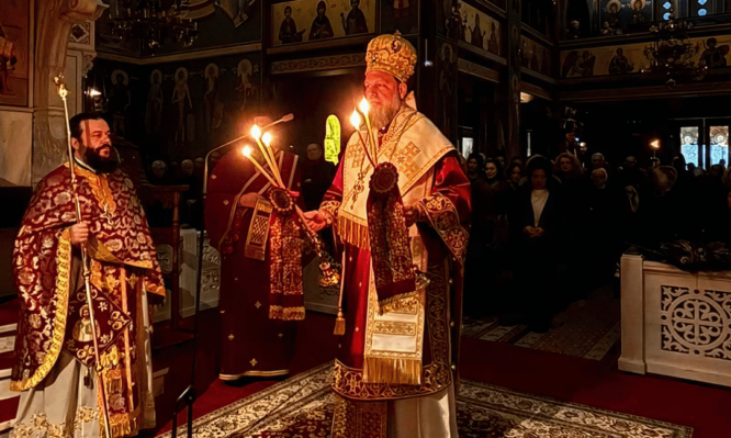 Μετά το πέρας της Ιεράς Αγρυπνίας εψάλη η Δοξολογία επί τη ενάρξει του νέου έτους και ακολούθως ο Σεβασμιώτατος ευλόγησε τη Βασιλόπιτα, απευθύνοντας πατρικές ευχές προς όλους για μία καλή, ειρηνική και ευλογημένη χρονιά.