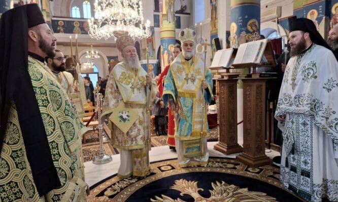 Την Κυριακή του Ασώτου, 16 Φεβρουαρίου 2025, ο Σεβασμιώτατος Μητροπολίτης Χαλκίδος κ. Χρυσόστομος, συνοδευόμενος από τον Θεοφιλέστατο Επίσκοπο Σκοπέλου κ. Νικόδημο, επισκέφθηκε την Ενορία Αγίου Νικολάου Μπούρτζι Χαλκίδος, όπου χοροστάτησε στον Όρθρο, προέστη στο αρχιερατικό Συλλείτουργο και χειροθέτησε Αναγνώστη τον Λαμπαδάριο της Ενορίας κ. Χρήστο Παπασταμούλο, αστυνομικό στο επάγγελμα, έγγαμο, πατέρα δύο τέκνων και μαθητή της Σχολής Βυζαντινής Μουσικής της Ιεράς Μητροπόλεως Χαλκίδος.