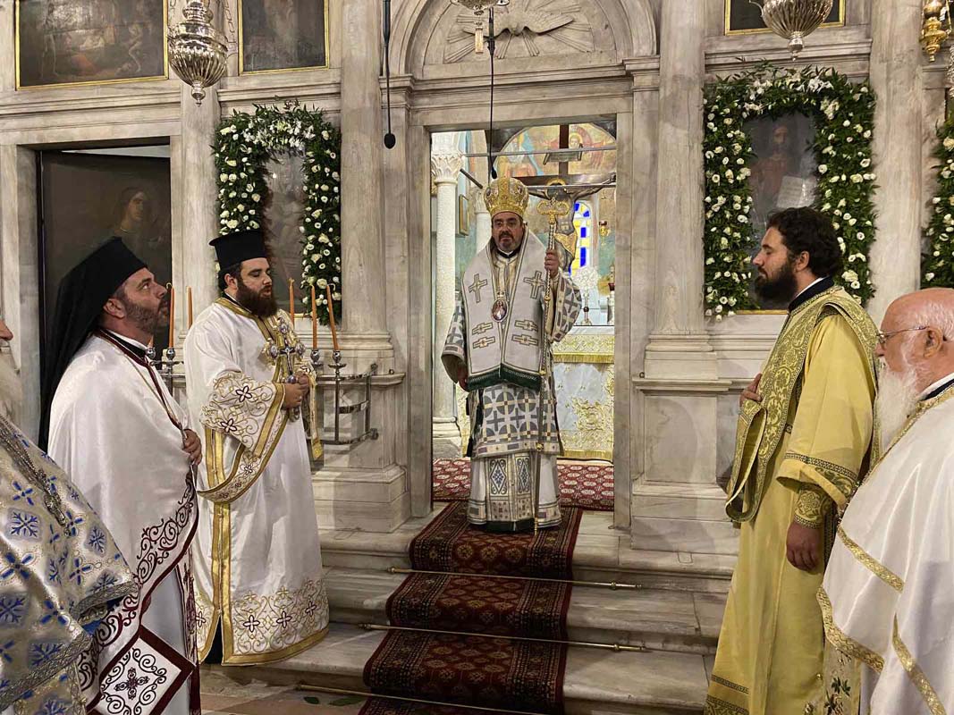 Με Αρχιερατικό Συλλείτουργο στο Ιερό Προσκύνημα του Αγίου Σπυρίδωνος, στο οποίο προεξήρχε ο Σεβασμιώτατος Μητροπολίτης Κερκύρας, Παξών και Διαποντίων Νήσων κ. Νεκτάριος και συλλειτούργησε ο Θεοφιλέστατος Επίσκοπος Κοτυαίου κ. Διονύσιος, βοηθός επίσκοπος της Ιεράς Μητροπόλεως Ιταλίας, συνεχίστηκαν το πρωί της Κυριακής 13 Αυγούστου 2023 στην Κέρκυρα οι εκδηλώσεις για την ανάμνηση του θαύματος του Αγίου Σπυρίδωνος, με το οποίο διασώθηκε το νησί από την πολιορκία των Οθωμανών Τούρκων το 1716.