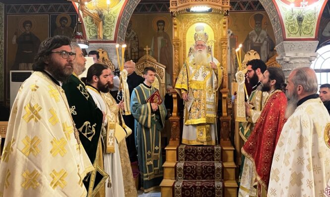 Στον Ιερό Ναό Αγίου Βασιλείου Βόλου λειτούργησε σήμερα, 2η Κυριακή του Τριωδίου, του Ασώτου, ο Σεβ. Μητροπολίτης Δημητριάδος κ. Ιγνάτιος, όπου τέλεσε την εις Πρεσβύτερον Χειροτονία του Διακόνου π. Δημητρίου Καμζιόλη, 31 ετών, εγγάμου, Αποφοίτου του ΙΕΚ Διοίκησης Επιχειρήσεων και Σπουδαστού της ΣΜΥΚ, παρουσία της Υφυπουργού Παιδείας, Θρησκευμάτων & Αθλητισμού κ. Ζέττας Μακρή και πλήθους πιστών.