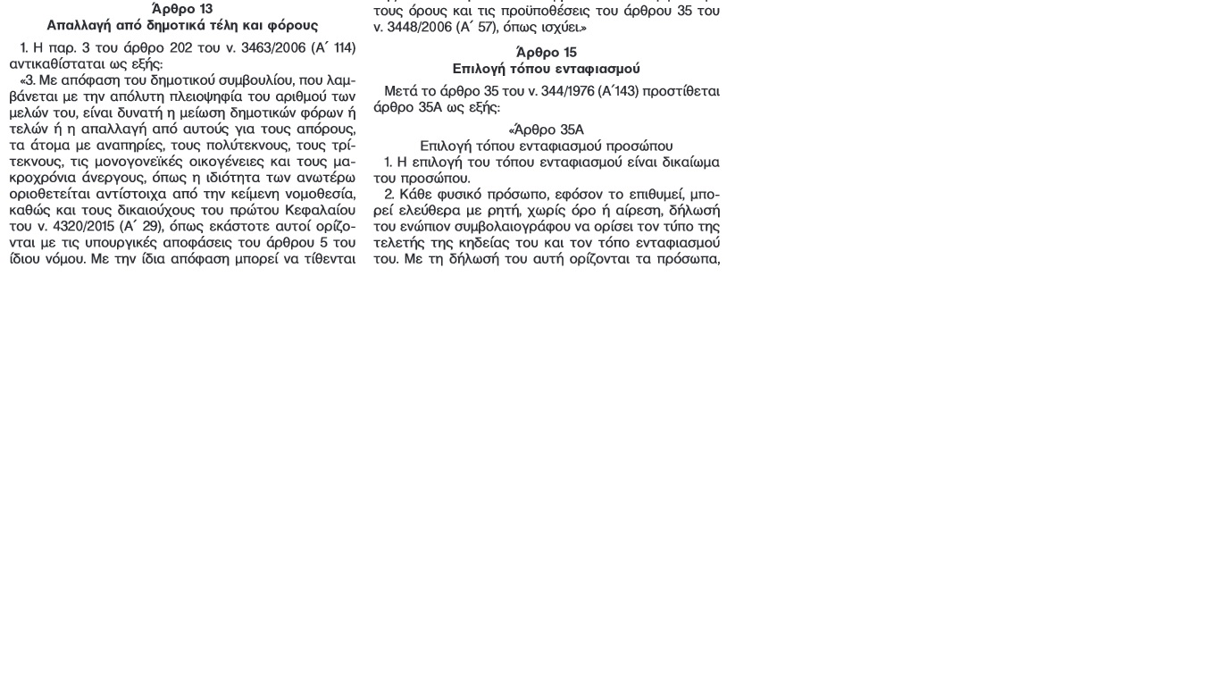 Στο Φύλλο Εφημερίδας της Κυβερνήσεως Νο 21 της Κυριακής 21ης Φεβρουαρίου 2016, όπου δημοσιεύθηκε ο νόμος 4368/2016, τον οποίο η Βουλή ψήφισε το περασμένο το Σάββατο, και πιο συγκεκριμένα στο 15ο άρθρο αναφέρονται τα ακόλουθα: