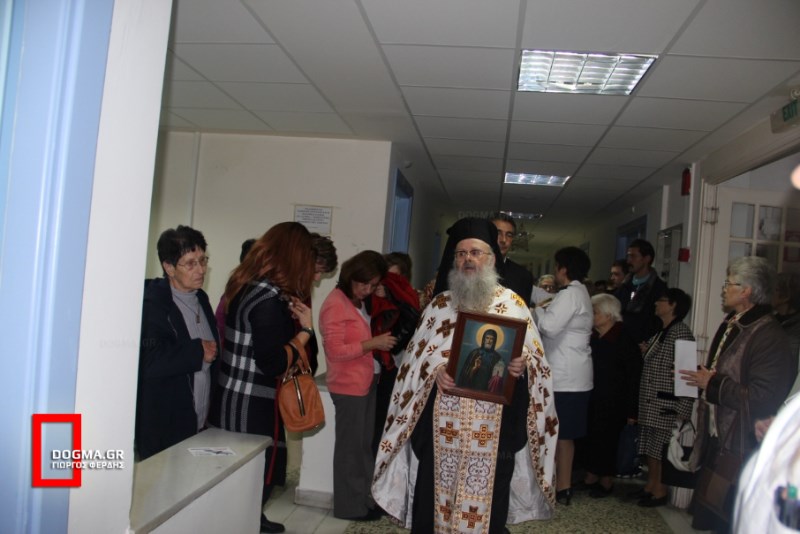 Από δωμάτιο σε δωμάτιο μεταφέρθηκε η εικόνα του Αγίου Σάββα κατά τη διάρκεια της λιτανείας σήμερα το απόγευμα στο Αντικαρκινικό Νοσοκομείο Αθηνών από τον π. Νεκτάριο.