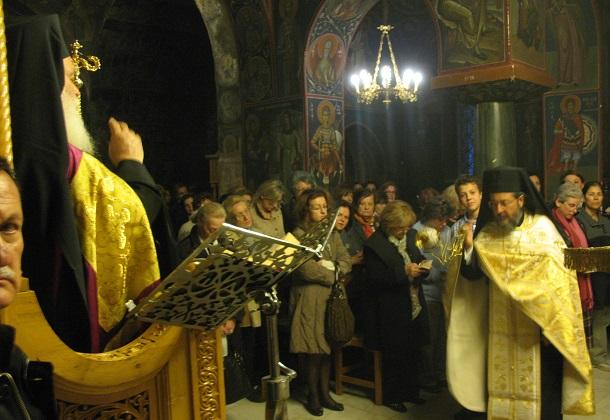 Στην Ακολουθία του Ακαθίστου Ύμνου χοροστάτησε ο Καθηγούμενος της Μονής, Σεβ. Μητροπολίτης Θερμοπυλών κ. Ιωάννης. Ο Σεβασμιώτατος στη σύντομη προσλαλιά του τόνισε ότι «οι στίχοι και η μελωδία των Χαιρετισμών, ευφραίνουν την καρδιά μας και τη γεμίζουν με χαρά, ζωή και ελπίδα, που τα έχουμε τόσο πολύ ανάγκη.