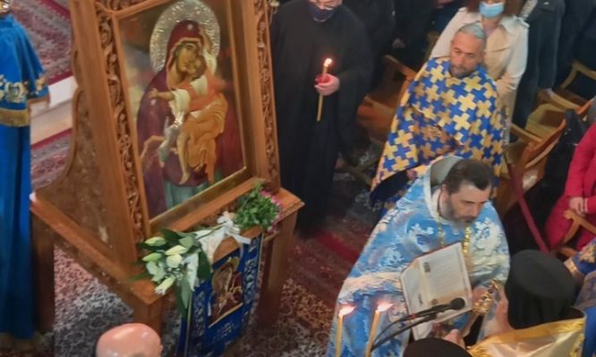 Σε κλίμα ιδιαίτερης κατάνυξης και συγκίνησης τελέσθηκε στον Ιερό Ναό Αγίου Δημητρίου Νέας Ελβετίας Βύρωνος και ενώπιον της Θαυματουργού Ιεράς Εικόνος της Παναγίας της Παρηγορητρίας της Δακρυρροούσης και Μυροβλυζούσης η Ακολουθία του Ακαθίστου Ύμνου της Υπεραγίας Θεοτόκου.