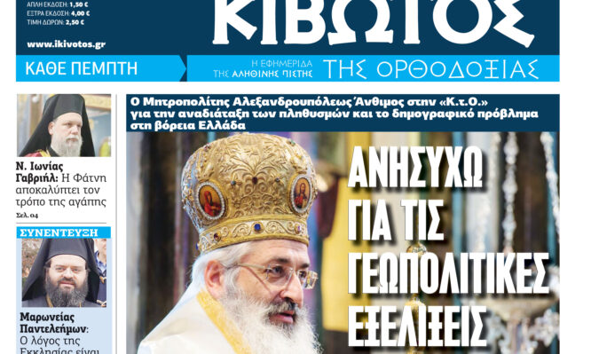 Ο Αλεξανδρουπόλεως Άνθιμος για τις γεωπολιτικές εξελίξεις στη Θράκη – Στην «Κιβωτό της Ορθοδοξίας» που κυκλοφορεί την Πρωτοχρονιά