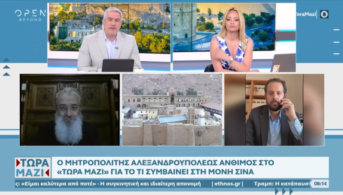 Ο Αλεξανδρουπόλεως κ. Άνθιμος στην πρωινή εκπομπή του OPEN «TΩΡΑ ΜΑΖΙ» για τη Μονή του Σινά (Βίντεο) ΕΛΛΑΔΑ, ΜΗΤΡΟΠΟΛΕΙΣ 31.05.2025 | 16:06