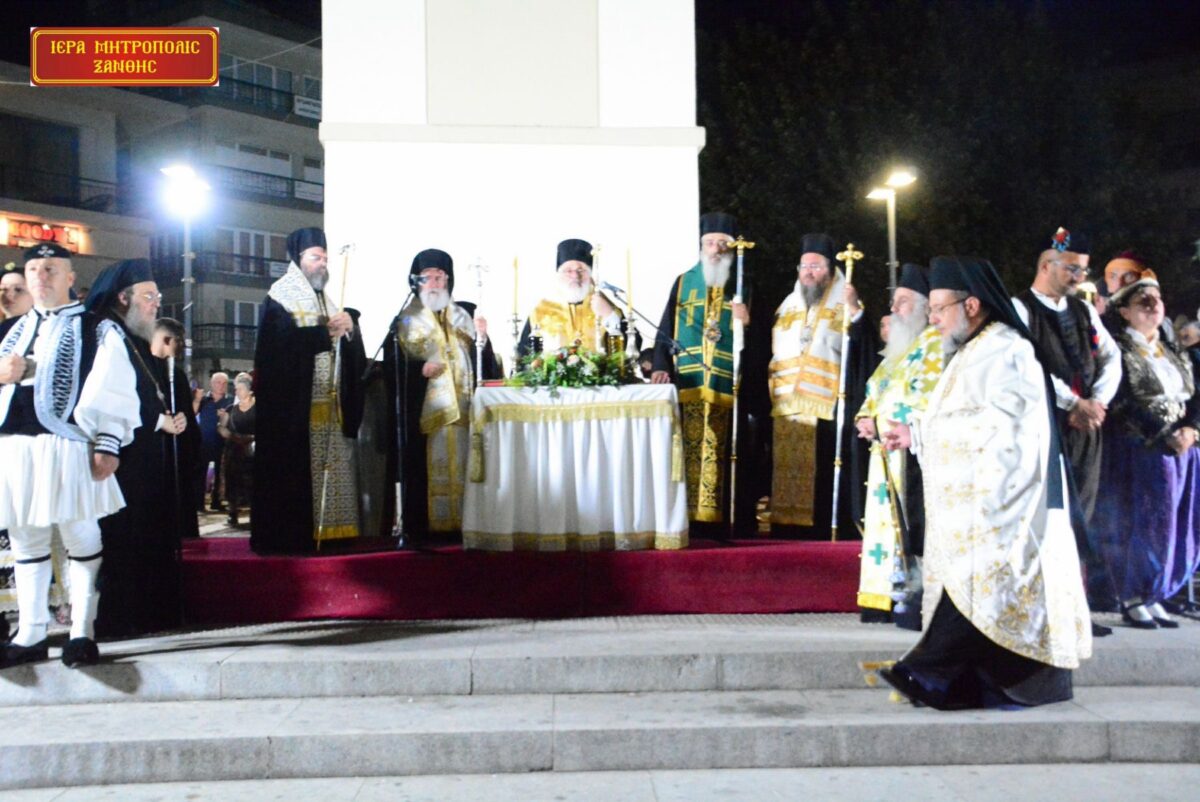 Το απόγευμα της Πέμπτης 28 Αυγούστου 2025, στον Ιερό Μητροπολιτικό Ναό του Τιμίου Προδρόμου Ξάνθης, τελέσθηκε ο Μέγας Πανηγυρικός Πολυαρχιερατικός Εσπερινός για την εορτή της Αποτομής της Τιμίας Κεφαλής του Τιμίου Προδρόμου και Βαπτιστού Ιωάννου. Η πόλη της Ξάνθης τιμά ιδιαιτέρως την μνήμη του Αγίου Ιωάννου και για αυτόν τον λόγο έχει οριστεί να τιμάται ως προστάτης και πολιούχος της.