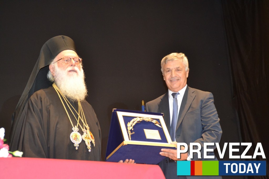 Ο Δήμαρχος Πρέβεζας αναφέρθηκε στο σημαντικό έργο του Αρχιεπισκόπου και τον καλωσόρισε στην πόλη καταγωγής της μητέρας του. Στη συνέχεια διαβάστηκε από τον πρόεδρο του Δημοτικού Συμβουλίου Κοσμά Κορωναίο η ομόφωνη απόφαση που αφορά στην ανακήρυξη του Αρχιεπισκόπου Αλβανίας σε Επίτιμο Δημότη Πρέβεζας και ο Δήμαρχος του απένειμε τιμητική πλακέτα.