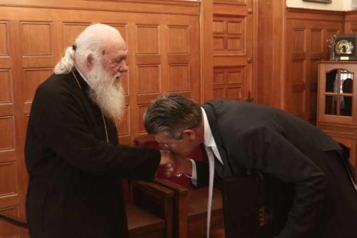 Κατόπιν, τον Αρχιεπίσκοπο επισκέφθηκε ο Υποψήφιος Περιφερειακός Σύμβουλος της Παράταξης «Αττική Μπροστά» κ. Νικόλαος Αδαμόπουλος, ο οποίος ευχαρίστησε τον Μακαριώτατο για την συνάντηση και αναφέρθηκε στα οράματα και στα σχέδιά του.