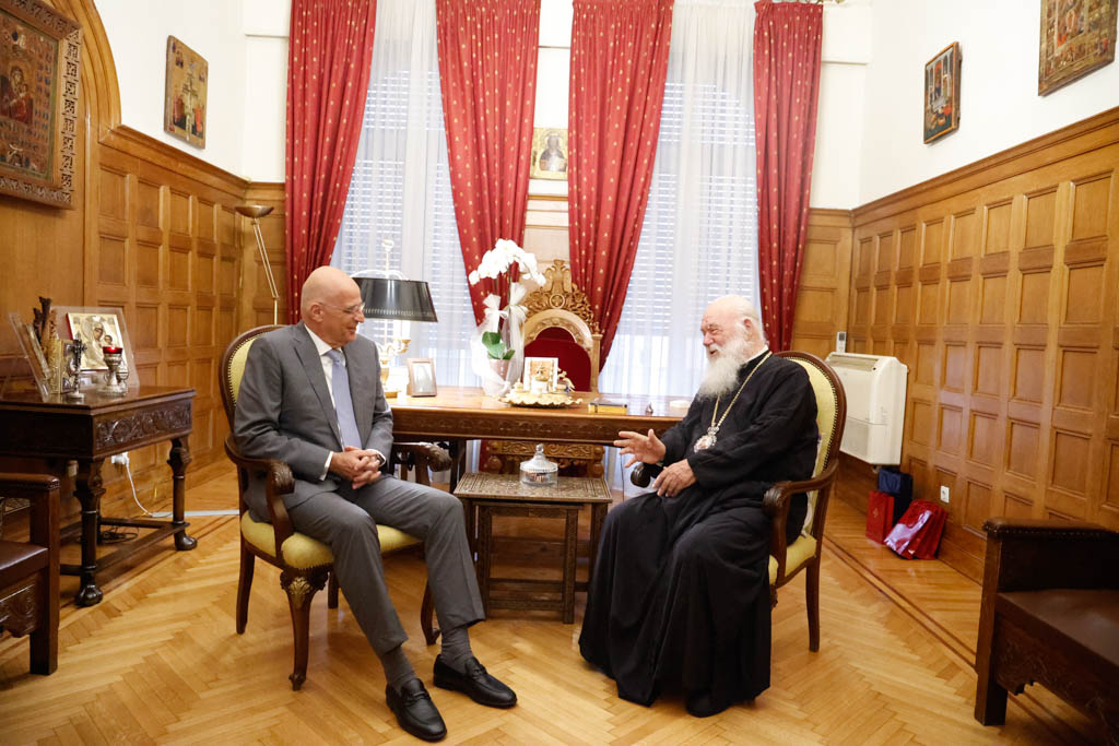 Τόσο ο κ. Δένδιας όσο και ο Μακαριώτατος ευχήθηκαν να επικρατήσει σύντομα η ειρήνη.