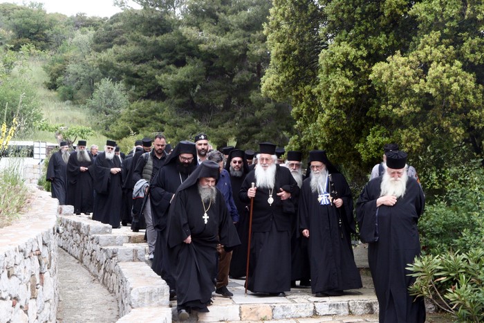 Τον Αρχιεπίσκοπο συνόδευε ο Πρωτοσύγκελος της Αρχιεπισκοπής, Αρχιμανδρίτης Βαρνάβας Θεοχάρης, ενώ παρέστησαν, ο Πολιτικός Διοικητής του Αγίου Όρους, κ. Αθανάσιος Μαρτίνος, ο Υποδιοικητής κ. Αρίστος Κασμίρογλου, ο Διευθυντής του Ι.Π.Ε. Αρχιμανδρίτης Θεολόγος Αλεξανδράκης, ο Αρχιδιάκονος του Αρχιεπισκόπου, π. Ιωάννης Μπούτσης και ο Διευθυντής του Γραφείου του Αρχιεπισκόπου κ. Ιωάννης Σ. Τσούρας. Τους υποδέχθηκαν ο Μητροπολίτης Θηβών και Λεβαδείας κ. Γεώργιος, ο Καθηγούμενος της Μονής, Αρχιμανδρίτης Σεραφείμ Παυλίδης και οι μοναχοί της Μονής. Επιπροσθέτως, το «παρών» έδωσαν ο Δήμαρχος Διστόμου – Αράχωβας κ. Γιάννης Σταθάς, Πολιτευτές, κληρικοί και λαϊκοί.