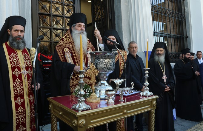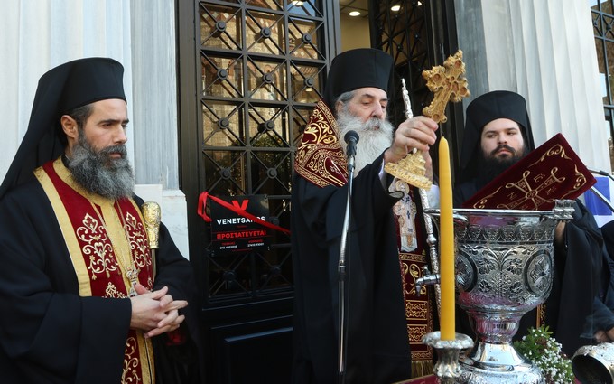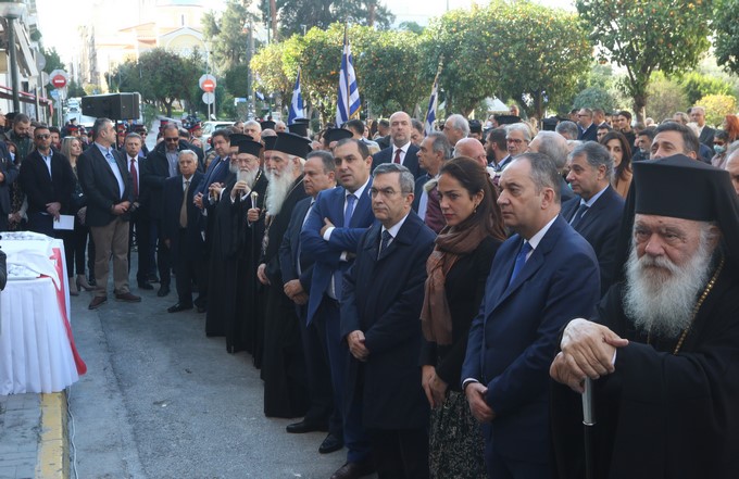 Την Ακολουθία του αγιασμού των εγκαινίων τέλεσε ο Μητροπολίτης Πειραιώς κ. Σεραφείμ, ο οποίος αμέσως μετά ευχαρίστησε τον Αρχιεπίσκοπο, τους Ιεράρχες και όλους τους παρευρισκόμενους για την παρουσία τους και αναφέρθηκε στο νέο Διοικητικό Κέντρο της τοπικής Εκκλησίας. Κατόπιν χαιρετισμό απηύθυνε η κ. Αθανασία Μαρινάκη, σύζυγος του Ευάγγελου Μαρινάκη, δαπάνη του οποίου ανακαινίστηκαν και διαρρυθμίστηκαν εξ ολοκλήρου τα νέα γραφεία της Μητροπόλεως στη μνήμη του μακαριστού πατρός του, Μιλτιάδη.